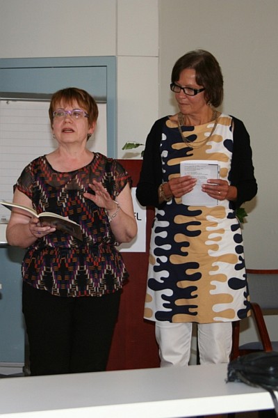 ![]() Carolyn Caines esittelee kirjaansa, tulkkina Päivi Kairento |