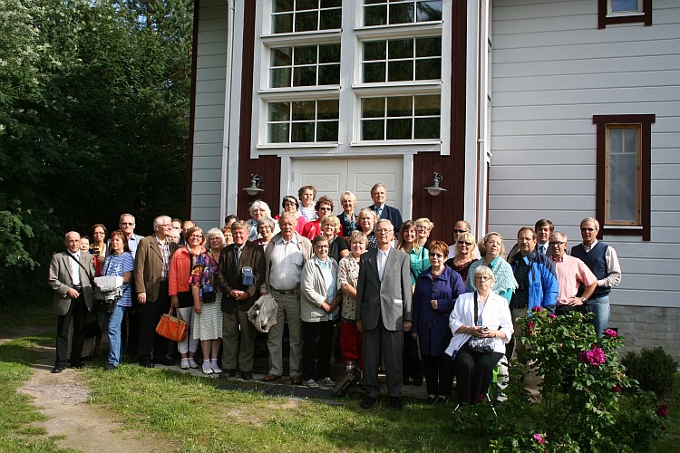 Puolankalehdessä 24.7 VÄYRYSTEN JUHLA OULUSSA JA LIMINGASSAJuhlaohjelma Sukuseura Väyryset ry vietti 25-vuotisjuhlaansa Oulussa lauantaina 13.7.2013. Osanottajia oli 70, joista Amerikasta asti tulleita oli kahdeksan henkilöä. Juhlapäivä alkoi isännän viirin nostamisella Edenin pihalla olevaan salkoon. Sisällä Paratiisissa saimme nauttia monipuolisista kahvipöydän antimista. Pääjuhlan avasi puheenjohtaja Juhani Väyrynen. Paavo Väyrynen kertoi mm. sukututkimuksestaan tehdessään kirjaa isästään Eemeli Väyrysestä. Musiikkia esittivät Maila Gadd, Pentti Väyrynen sekä yleisö. Kevennystä toi taikuri Ilkka Maunula. Juontajana toimi Esko J. Väyrynen. Puheiden ja muiden esitysten jälkeen lähdimme kiertoajelulle Liminganlahden lintuluontokeskukseen, vierailimme vanhassa Limingassa ja lopuksi Maire Mannisen ateljeessa. Oppaana matkalla oli Pirkko Kukkohovi. Illalla ruokailun jälkeen Eero Schroderus esitti monologeja, Carolyn Caines esitteli kirjoittamansa kirjan sekä Anne Seppänen pianon soittoa. Loppuilta kului vapaan seurustelun, tuttujen ja sukulaisten tapaamisen merkeissä. Sukujuuria etsimässä – ensimmäistä kertaa Suomessa Amerikasta juhlaan osallistuneiden isovanhemmat olivat 1900-luvun alkupuolella lähteneet Amerikkaan Puolangan Pikku-Kurtosta. Nyt kolmannen polven amerikkalaiset olivat tulleet etsimään juuriaan. Useimmat heistä olivat ensimmäistä kertaa Suomessa. Puolangan Pikku-Kurtosta Väyrysten sisaruksista muuttivat Amerikkaan Hanna, Reeta, Eeli ja Antti. Puolangalle jäi sisaruksista vain Matti. Antin ja Reetan jälkeläiset vierailivat nyt samoilla paikoilla Pikku-Kurtossa. He kuulivat kertomuksia Matin taidoista tehdä mitä tahansa omin käsin. Antin jälkeläisiä mukana olivat Maila Cadd ja Vibeke Arenz puolisoineen. Amerikan vieraat kävivät tutustumassa myös Pohjolan tilaan Lylykylässä. Reeta oli mennyt Pohjolan talosta Amerikkaan muuttaneen Tuomas Juntusen kanssa naimisiin. Reeta ja Tuomas Juntusen jälkeläisistä mukana olivat Carolyn Caines ja Steve Fischer puolisoineen sekä Ruth Juntune. Atlantin takaa tulleet vieraat olivat hyvin otettuja siitä, että pääsivät tutustumaan paikkoihin, joista heidän isovanhempansa olivat lähteneet. |